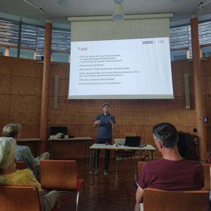 Ein Herzensthema von Julius: Er beleuchtete bei der Abendsveranstaltung "Lebenselexir Wasser" in der Bauernschule Bad Waldsee die Rolle landwirtschaftlicher Flächen im Schutz vor Starkregen. Außerdem erklärte er, welche Informationen zur Starkregengefahr verfügbar sind, oft gibt es zum Beispiel bereits Berechnungen mit Überflutungskarten. Diskutiert wurde auch medizinische Wasseranwendungen und Moorbewirtschaftung.